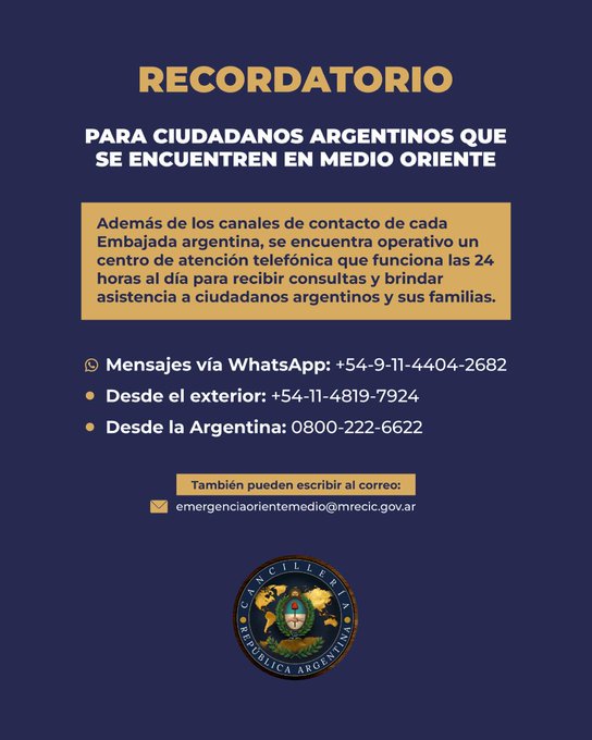 Además de los canales de contacto de cada Embajada argentina, se encuentra operativo un centro de atención telefónica que funciona las 24 horas al día para recibir consultas...
